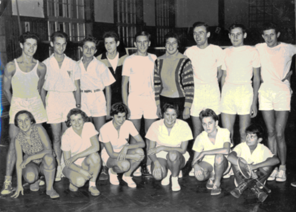 Čepijo od leve proti desni: Mariča Amf, Andreja Gostiša, Vida Leskovar, Meta Bögel, Danče Pohar, Jani Drinovec (vsi Olympia)
